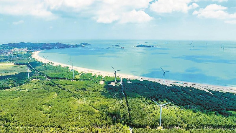 在平潭长江澳,郁郁葱葱的林海沿着海岸线延伸。 通讯员 林君斌 摄