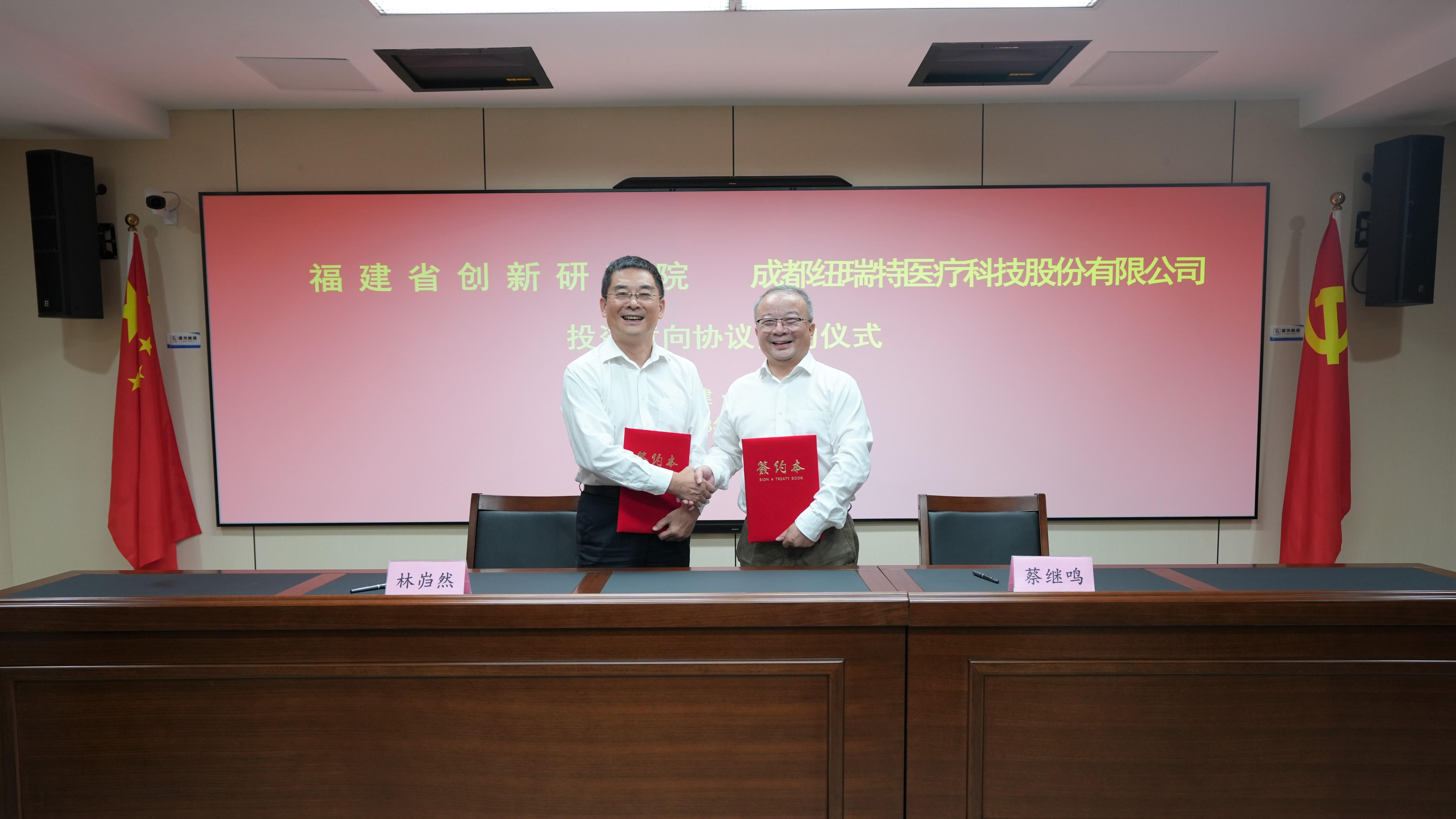 10月13日下午,福建省创新研究院和成都纽瑞特医疗科技股份有限公司(以下简称:纽瑞特)在榕完成投资意向协议签约。省创新研究院党委书记、院长林岿然,纽瑞特董事长蔡继鸣,省创新研究院党委...