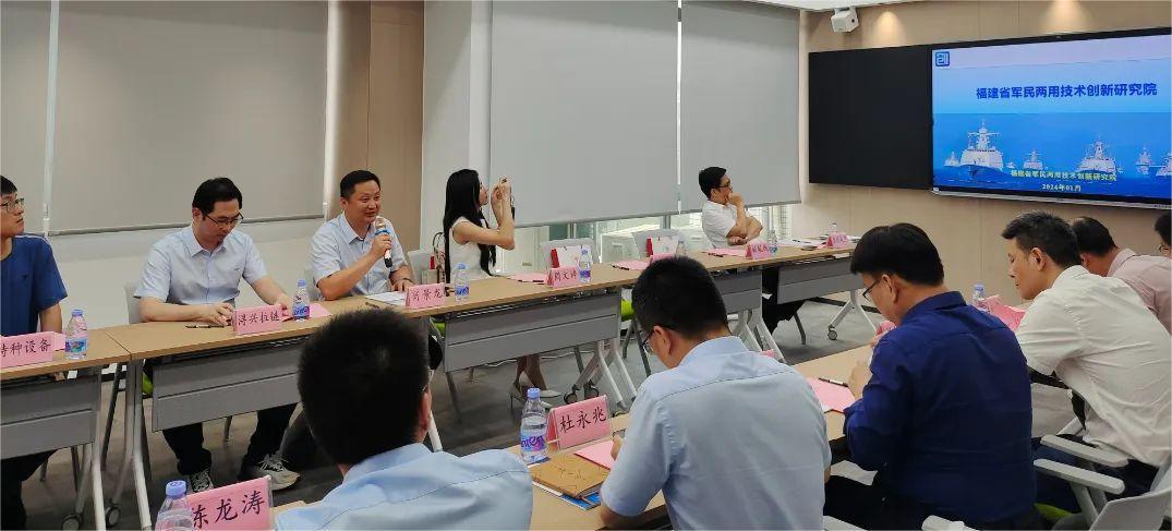 泉州分院负责人肖景龙向与会人员介绍两创院的基本情况,以及两创院在军民两用技术与科技成果转化、项目申报以及产业化运作等方面的工作布局与成效。两创院将持续发挥自身平台优势,以需求为牵引,高水平做好科技成果转化工作。