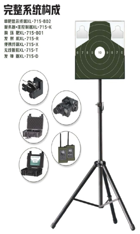 ● 发射机、胸环靶、无线扳机、单靶显示终端、服务器+主控制器、便携终端、发弹器