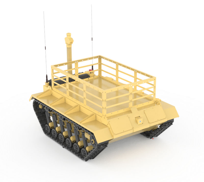 UGV-A800T履带式无人运输车是一款班组支援装备,具有遥控驾驶功能复杂地貌高机动能力,并具备周向防弹的能力,可在危险环境下替代或伴随人员前突执行侦察或运输任务。