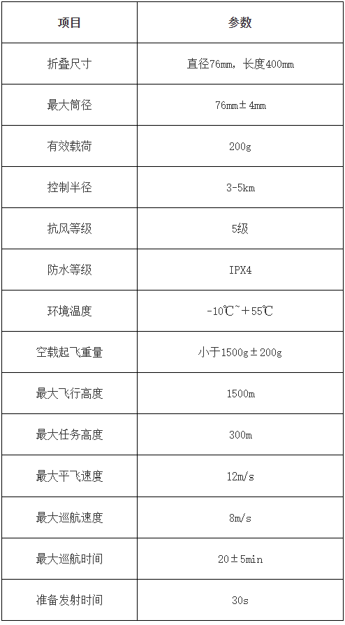 M76竖折小型巡飞弹采用全机身玻纤复合材质设计,体积小,重量轻,由可单兵随身携带。支持战士手抛、枪发起飞,抛发后机臂自动展开,迅速切换飞行模式。机身上装有光电传感器,支持AI人型、车型识别,可实时向掩体后的战士回传目标动态视频及其坐标位置。无人机上安装有自爆装置,可由战士单兵控制,定位目标坐标后,下达攻击指令,无人机将快速俯冲向目标位置,触物爆炸,达到消灭威胁目标的目的。