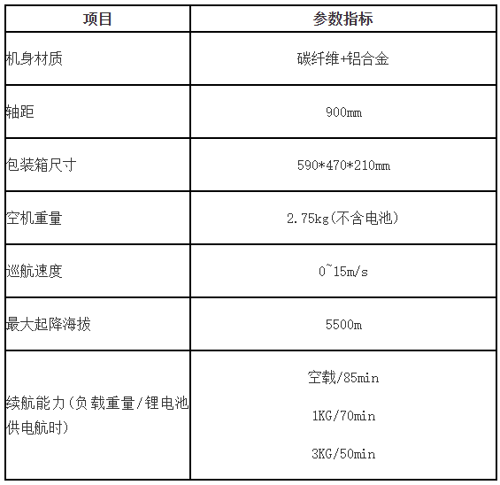 KS4四旋翼无人机采用高温模压碳纤维一体成型工艺,碳纤维复合材料的高比强度和高比刚度的特性能够大大保证无人机结构的轻质化、小型化和高性能。
