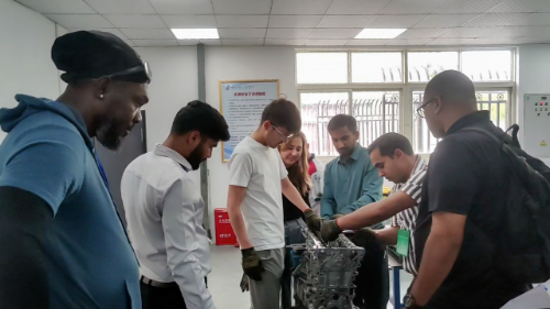 2025年发展中国家汽车运用与维修技术人员培训班的学员们在课堂开展实际操作学习。南南基地供图