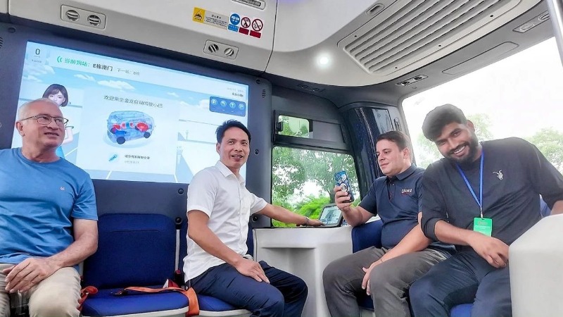学员们登上金龙自动驾驶小巴体验自动驾驶技术