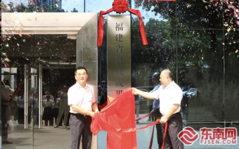 在热烈的掌声中,省创新研究院党委书记、院长兼省科技厅党组成员、副厅长林岿然与省科技成果转化中心筹建工作临时党支部书记张华共同为福建省科技成果转化中心揭牌。