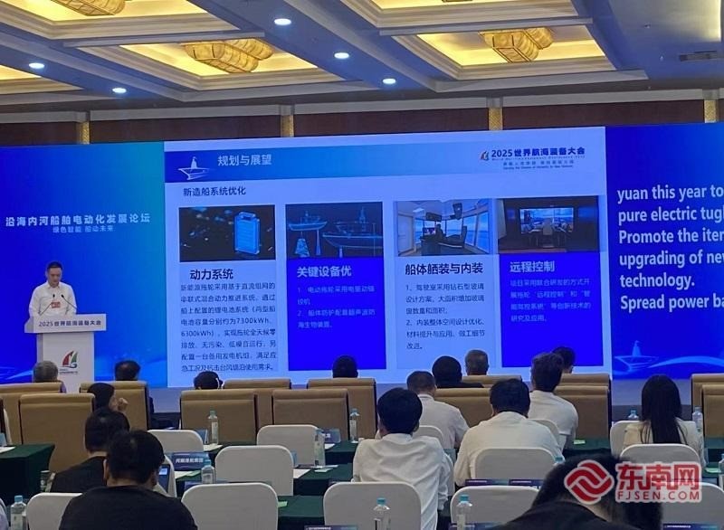 东南网10月16日讯(本网记者 卢金福 文/图)10月16日下午,沿海内河船舶电动化发展论坛在福州举办。本次论坛作为一场高规格、前瞻性的行业盛会,成功汇聚了“政、产、学、研、用”各界精英,为福建省乃至全国电动船舶产业的创新发展注入了强劲动力。