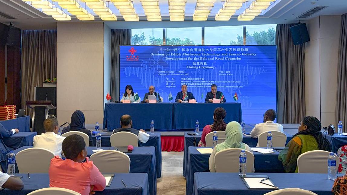 【央视影音】2025年“一带一路”国家食用菌技术及菌草产业发展研修班结业典礼在福州举行