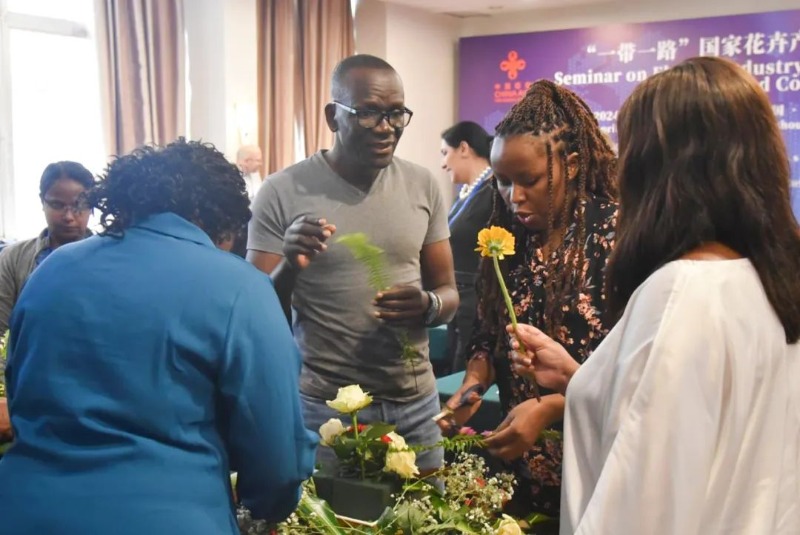 永生花制作、插花体验、实地考察参观……通过理论和实操相结合的培训方式,南南基地累计举办19期“一带一路”国家花卉产业管理研修班,为来自84个国家的543名学员展开培训,帮助学员们深入了解了中国花卉行业发展和管理经验,将所学知识转化为发展本国花卉产业的实践方案,开拓增收渠道,解决当地就业问题。