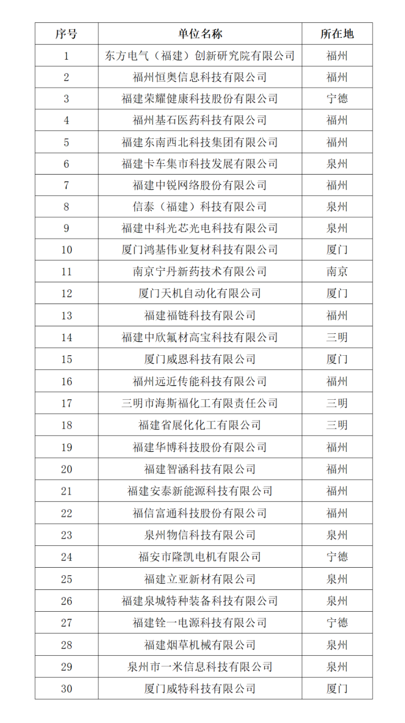 为深入贯彻落实党的二十大、二十届三中全会和习近平总书记来闽考察重要讲话精神,贯彻落实省委十一届七次全会精神和省委科技委员会的工作部署,规范福建省创新研究院企业服务流程,更好的统筹、协调、服务、保障科技成果转化,创研院完成了2024年“创研系”生态企业征集工作,现将入库企业名单予以公示。