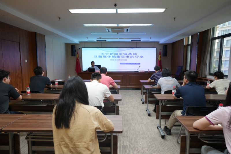 专题培训会上,颜财斌围绕“新闻的基础采编”“新闻图片”“新媒体编辑思维”等三方面内容,结合自身多年采写实操经验,从怎样写好标题、导语、主体、结尾等角度对新闻撰写结构进行解析,并就如何在日常工作中捕捉新闻线索、提炼新闻素材、撰写高质量新闻稿件进行了生动阐述。授课期间还多次引用我院已经发布的新闻稿件开展现场点评,培训内容丰富且具有较强的针对性。