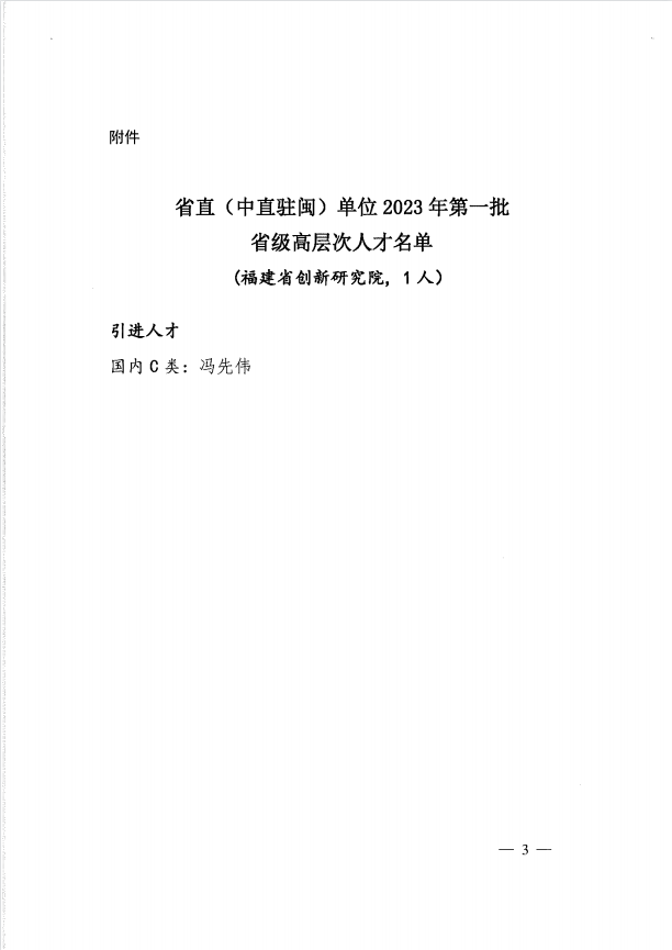 近日,福建省创新研究院中科育成中心主任冯先伟被福建省人力资源和社会保障厅确认为省直单位2023年第一批省级高层次人才。