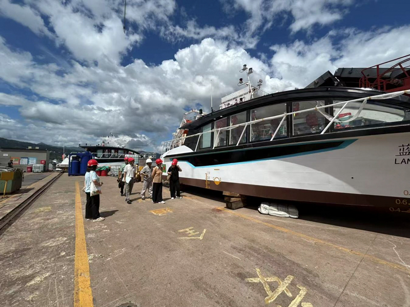 在宁德福安市调研中,调研组把脉产业现状,厘清发展需求,围绕电动船舶“核心部件—整船建造—配套服务”全产业链条,实地调研福建福宁船舶重工有限公司、宁德劲之龙动力有限公司、福建航电控制设备有限责任公司等重点企业,深入了解企业发展实情与技术需求。调研组重点考察了福宁船舶重工5000吨级船台、船坞等核心设施,详细了解“武夷2号”“屿见77”等代表性电动船舶的技术特点与运营成效;在劲之龙动力公司,围绕轮缘推进器、新能源动力系统等核心产品,探讨其技术优势与产业化前景;在航电控制设备公司,详细了解企业在船用电力系统设计、设备配套与运维服务等方面的能力。