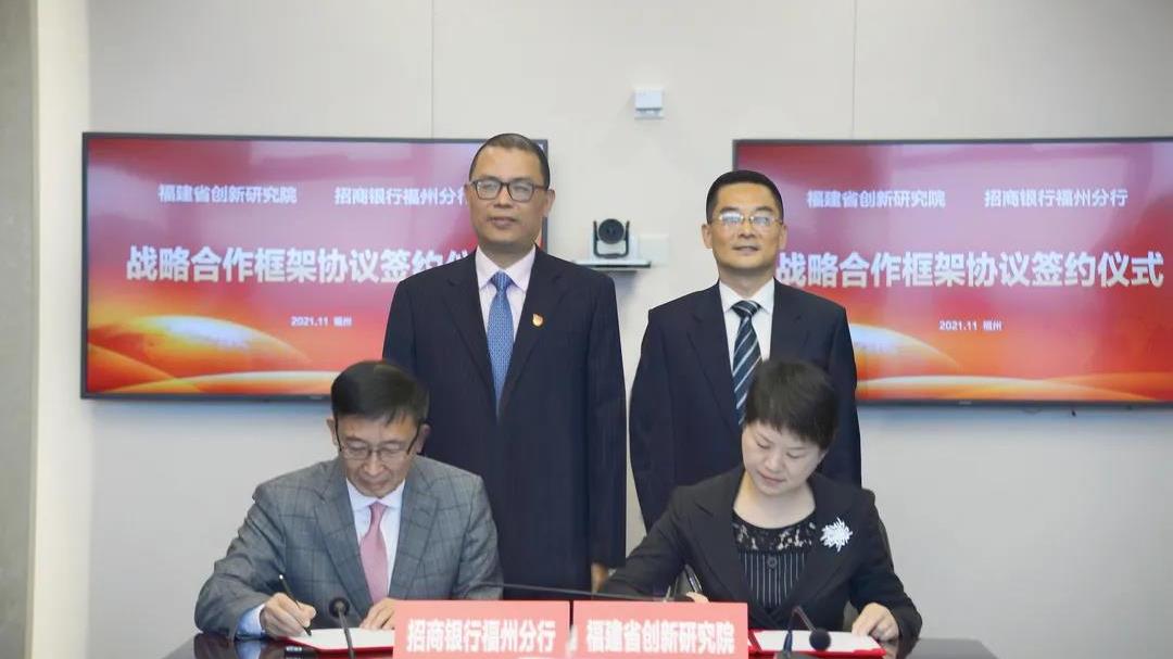 2021年11月8日,福建省创新研究院与招商银行福州分行签署战略合作协议,双方将在优质金融服务、深化双方合作、支持二级机构、开展文明共建等方面开展全面合作。