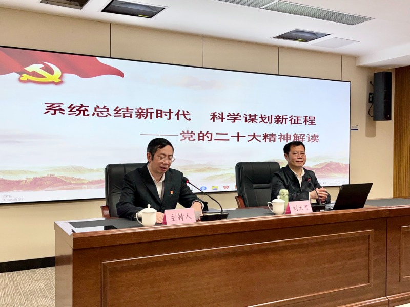 刘大可以“系统总结新时代 科学谋划新征程——党的二十大精神解读”为题,从党的二十大的主题和主要成果、过去5年的工作和新时代10年的伟大变革、马克思主义中国化时代化、中国式现代化、全面建设社会主义现代化国家的目标任务、坚持党的全面领导和全面从严治党等六个方面,对党的二十大提出的新思想、新论断,作出的新部署、新要求,以理论阐述解读、历史背景分析、现实事例论证等方式,立足我省实际,进行了系统全面、生动详实的宣讲。