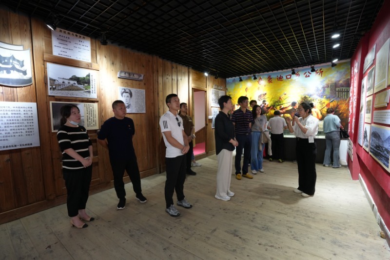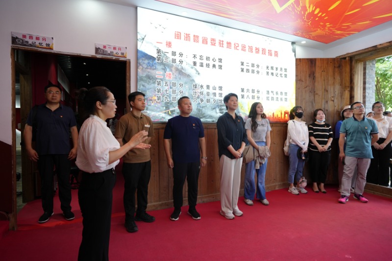 在闽浙赣省委驻地纪念馆内,一段段文字讲述历史、一帧帧照片定格瞬间、一幅幅绘画描摹岁月、一件件实物记忆往昔,全面展现了革命老区人民在中国共产党的领导下“对党忠诚、敢为人先,不怕牺牲、无私奉献”的革命斗争精神。“一劝同志正月正,不怕艰难和危险,劝你同志要坚心,努力向前不变心;二劝同志二月二……”在《十二劝同志革命》的歌词前,大家驻足齐唱,热情高涨、深受鼓舞。这首传唱在革命老区的红色歌曲,鲜明地体现了老区的革命精神,同时与主题教育中提出的“以学铸魂、以学增智、以学正风、以学促干”任务要求高度相关。大家纷纷表示,今后要以革命先辈们为榜样,立足岗位、扎实工作。