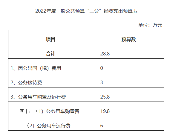 十一、“三公”经费:纳入财政预决算管理的“三公”经费,是指使用财政拨款安排的因公出国(境)费、公务用车购置及运行费和公务接待费。其中,因公出国(境)费反映单位公务出国(境)的国际旅费、国外城市间交通费、住宿费、伙食费、培训费、公杂费等支出;公务用车购置及运行费,指单位公务用车购置支出(含车辆购置税、牌照费)及燃料费、维修费、过桥过路费、保险费、安全奖励费用等支出;公务接待费反映单位按规定开支的各类公务接待(含外宾接待)支出。