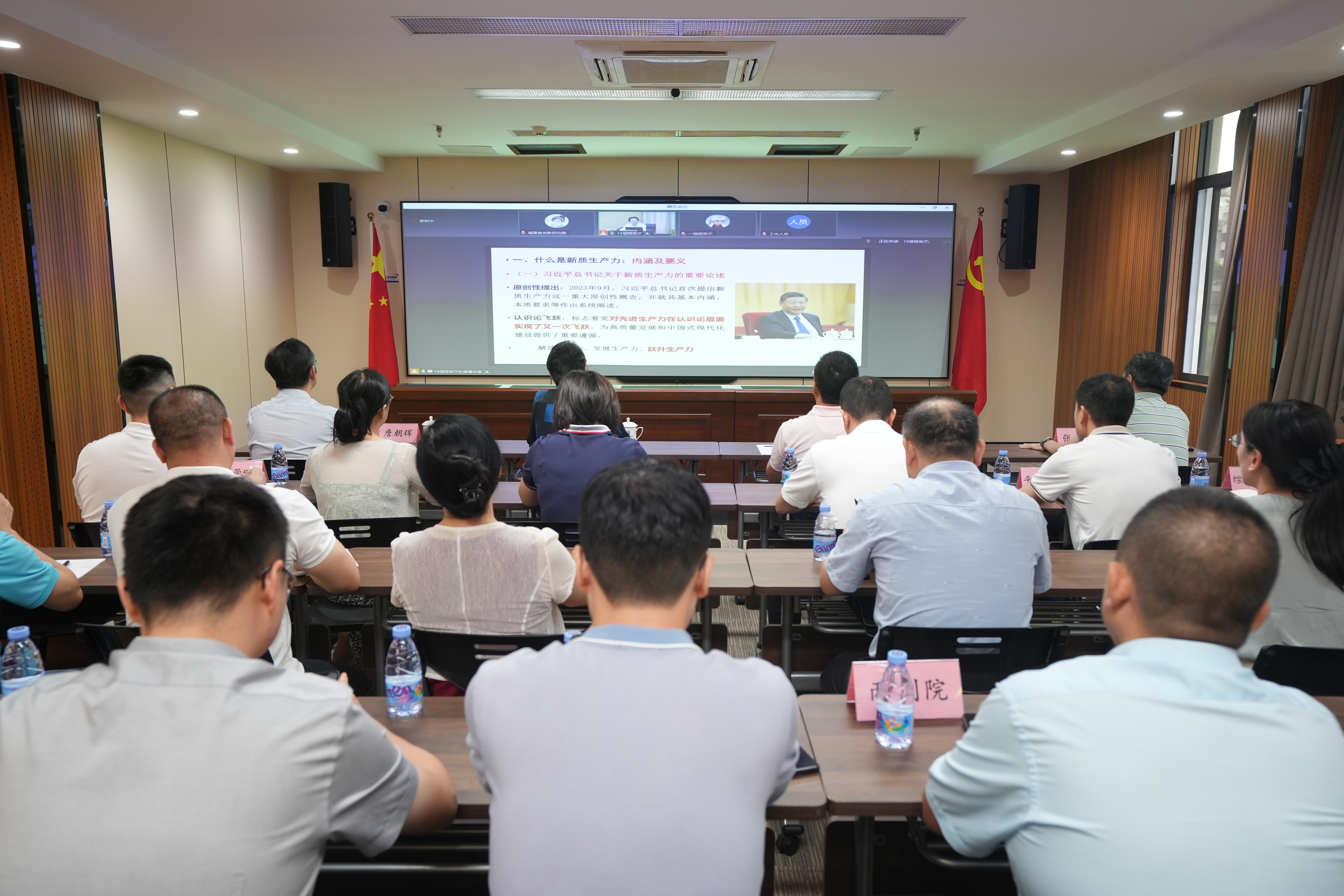 为深入学习贯彻党的二十届三中全会和全国科技大会精神,落实好“因地制宜发展新质生产力”重大要求,7月29日,省科技厅和省创新研究院共同邀请浙江大学副校长、教育部“长江学者奖励计划”特聘教授黄先海作《加快发展新质生产力 推动经济高质量发展》专题辅导讲座。院党委班子成员、全院党员干部、所属单位负责同志及党员代表参加讲座。
