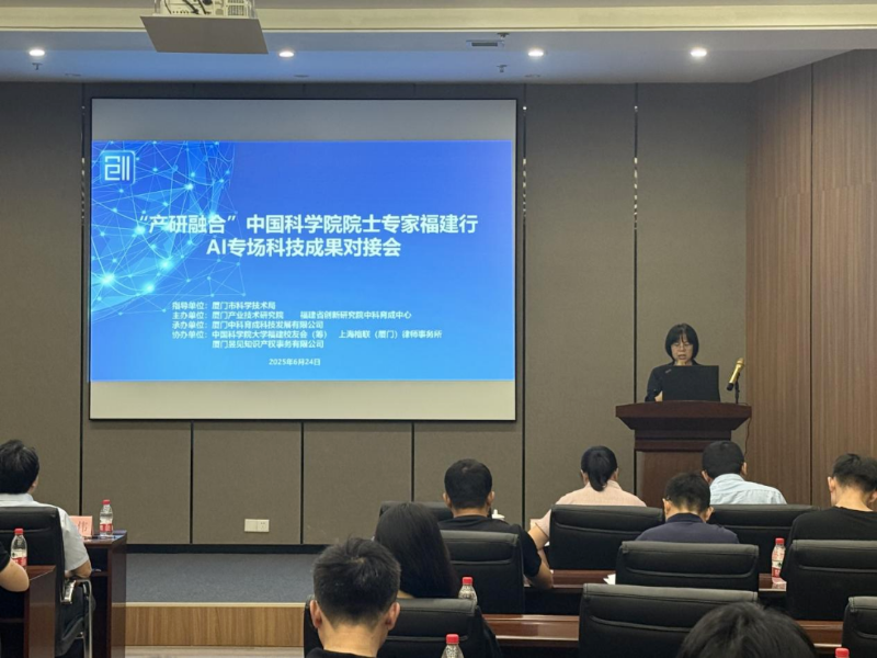 2025年6月24日,“产研融合”中国科学院院士专家福建行AI专场科技成果对接会在厦门科技成果转化加速器I期隆重举行,中国科学院成都计算机应用研究所研究员、副总工程师秦小林受邀作专题报告。福建省创新研究院中科育成中心主任冯先伟、厦门产业技术研究院(简称“产研院”)投资管理部部长付娟妮、厦门中科育成科技发展有限公司总经理林可爱、星河未来(厦门)人工智能技术有限公司总经理胡广跃、上海格联律师事务所高级合伙人夏海波、厦门昱见知识产权事务有限公司创始人陈玉苹等50余人参加了本次活动。