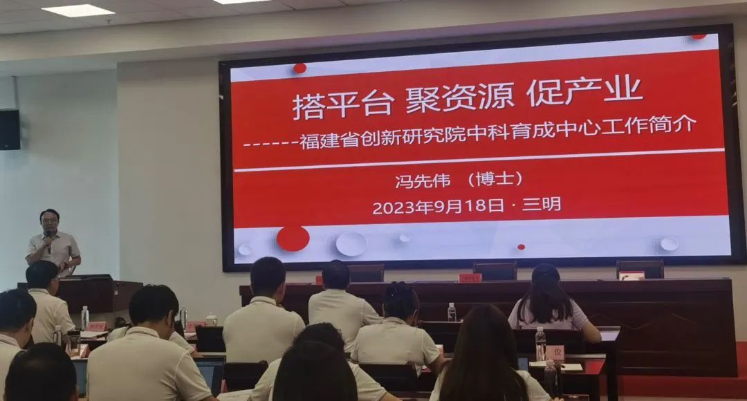 据悉,本次活动由三明市科技信息研究所、福建省中科育成投资有限公司承办。上海科技管理干部学院院长、副书记曾方、上海科技管理干部学院原党委书记华庆城、上海市科技党委组织人事处副处长李庆华、三明市委党校副校长田生海、三明市科技局副局长陈伟等参加了本次活动。三明市各县(市、区)、经开区、高新区科技系统相关负责人、中国科学院福建物质结构研究所专家、福建省中科育成投资有限公司工作人员及相关企业代表参会交流。