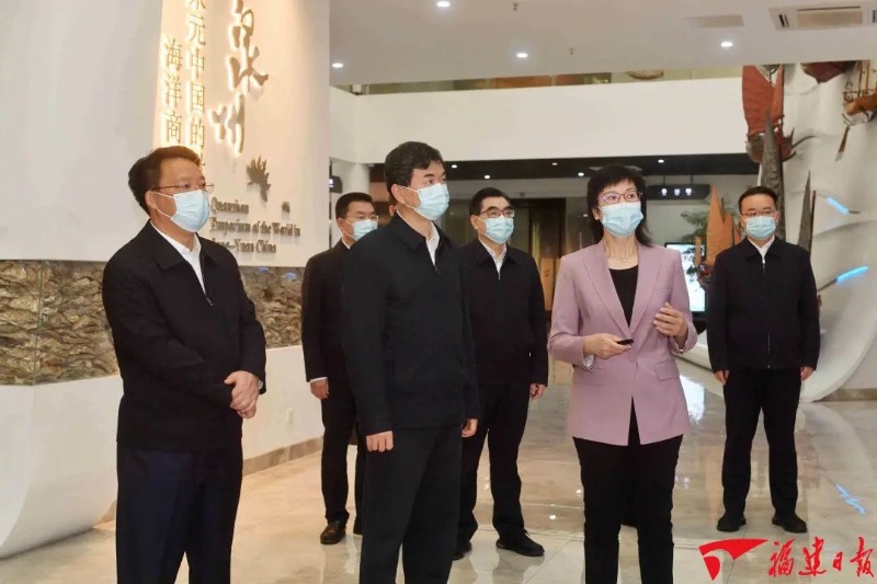 向海而生、开放包容,是泉州这座千年历史文化名城的精神特质。周祖翼一行来到泉州海外交通史博物馆,通过丰富独特的海交文物,了解《世界遗产名录》“泉州:宋元中国的世界海洋商贸中心”的历史背景和遗产价值,感受这个我国古代海上丝绸之路起点的辉煌历史。周祖翼希望泉州立足对外开放的基础和优势,大力传承中华海洋文明,持续扩大对外经贸合作,保护好、传承好、宣传好历史文化遗产。