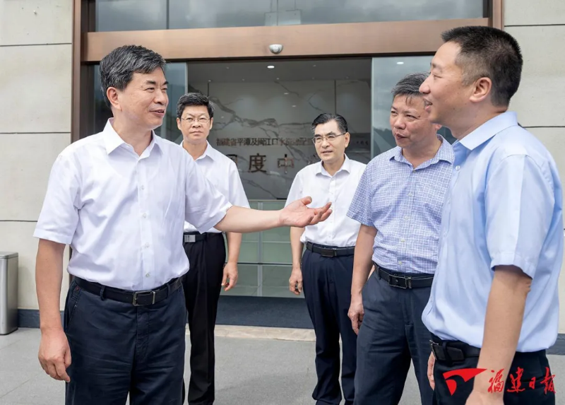 “一闸三线”工程(平潭及闽江口水资源配置工程)是新中国成立以来我省最大的引调水工程。周祖翼来到莒口水闸,走进调度中心,察看工程运行管理、水质监测和水资源保护利用、生态环境保护、防汛备汛等情况。了解到工程全线通水后让供水区人民喝上了大樟溪优质水,有效解决了闽江口城市群供水安全问题,周祖翼十分高兴。他说,水是生存之本、文明之源,高质量的水是重要资源。要认真贯彻落实党的二十届三中全会精神,健全重大水利工程建设、运行、管理机制,落实水资源刚性约束制度,用心用情守护好一泓碧水。要切实抓好“一闸三线”工程涉及流域的水资源保护工作,不断提升供水水质,让老百姓喝上安全水、放心水;要落实河湖长制,提升河湖水系治理水平,有效发挥工程调蓄功能,提高防汛备汛能力,筑牢水生态安全屏障;要发挥好经济功能,探索生态产品价值实现机制,带动全社会自觉守水护水节水,为经济高质量发展提供更多“水动力”。