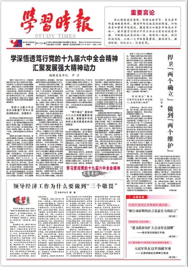 党的十九届六中全会,全面总结党的百年奋斗重大成就和历史经验,对实现第二个百年奋斗目标提出明确要求,是我们党历史上具有里程碑意义的重要会议,必将载入中华民族伟大复兴的史册。我们把学习贯彻全会精神作为一项重大政治任务,引导党员干部带头持续深入学、全面系统学、联系实际学,推动全省上下迅速兴起热潮,确保全会精神在福建落深落细落实。