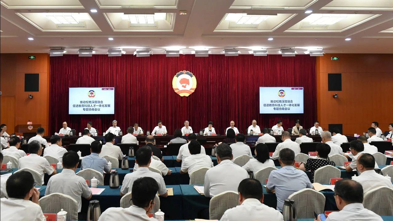 8月13日,福建省政协召开“推动校地深度融合,促进教育科技人才一体化发展”专题协商会。省政协主席滕佳材主持会议,省委常委、组织部部长苗延红出席并讲话。
